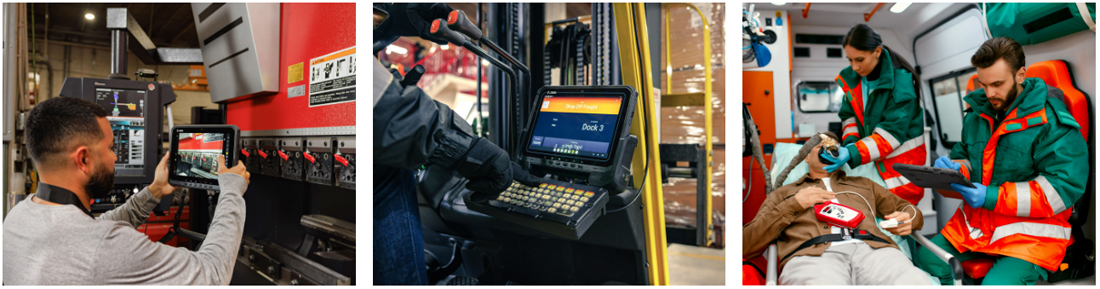 - Široká flexibilita: Tyto tablety se snadno přizpůsobí různým pracovním scénářům. Lze je využít jako odolný tablet, jako laptop i jako vozidlový terminál. S připojitelnými klávesnicemi a doky se rychle přemění na plnohodnotný pracovní nástroj.